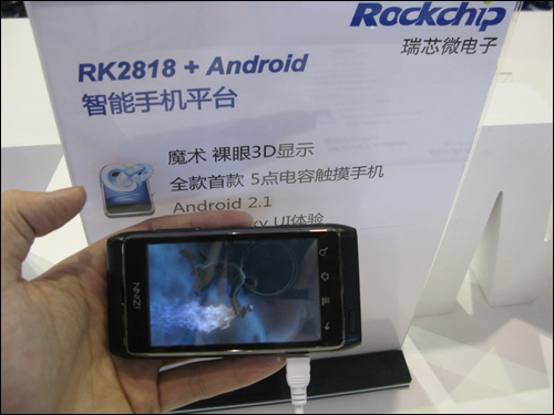 Rockchip's RK2818 + Android smartphone added 3D display technology, both HD and 3D are available.