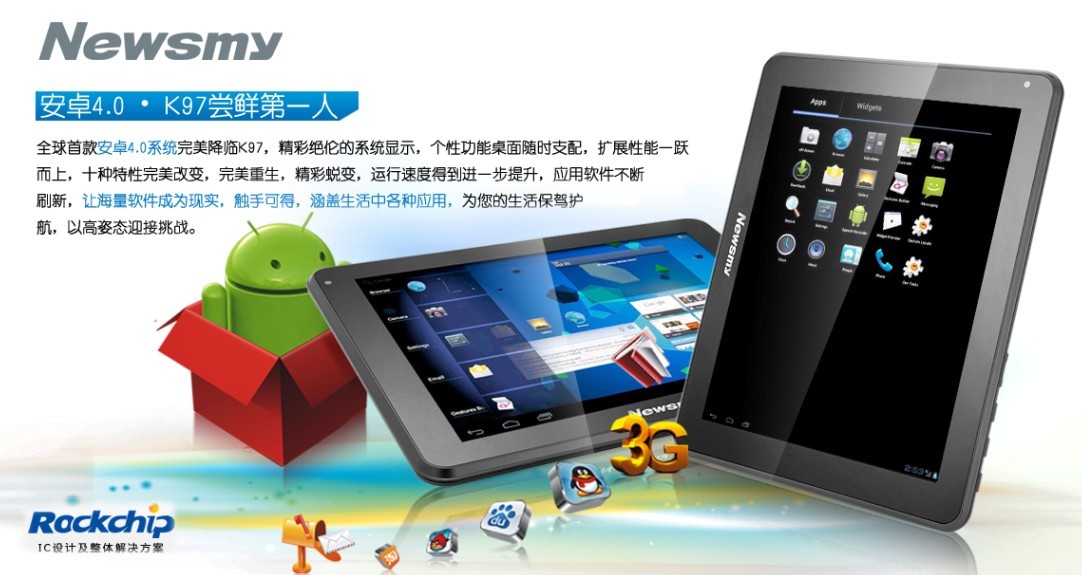 This week, the first Android 4.0 tablet in the world will go on sale, which is powered by Rockchip RK2918 chips and manufactured by numbers of brand companies in China. For those who have got an Android 2.3 tablet in hand, the device can get a free to the newly released version at the same time. Let’s get a big bite on the Ice Cream Sandwich!