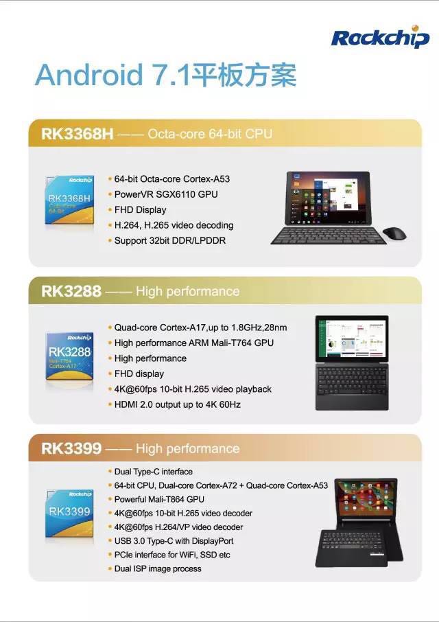 During Hong Kong Electronics Exhibition, Rockchip displayed several 2in1 tablets and PC-like product solutions, ranging from brand new RK3368H solution with highest performance-cost ratio to RK3288/RK3399, high-end solutions.